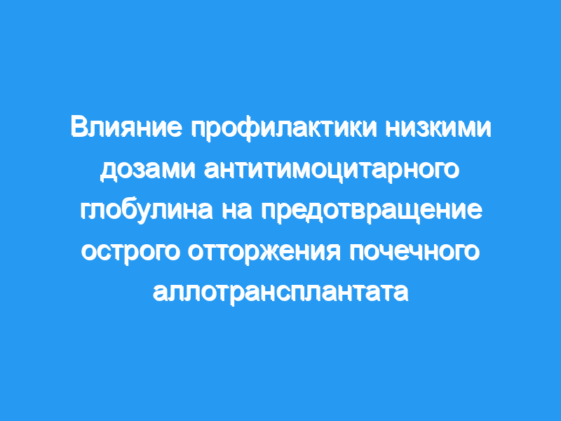 Профилактическое введение однократной и низкой дозы АТГ в ночь перед трансплантацией почки может снизить риск острого отторжения аллотрансплантата у реципиентов почечного трансплантата. Однако для подтверждения этих результатов необходимо провести дальнейшие исследования с участием большего числа пациентов.