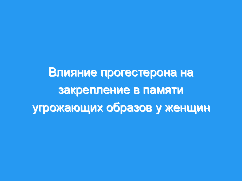 В этом исследовании изучалось влияние прогестерона на кортизол и консолидацию памяти об угрожающих стимулах в условиях стресса..