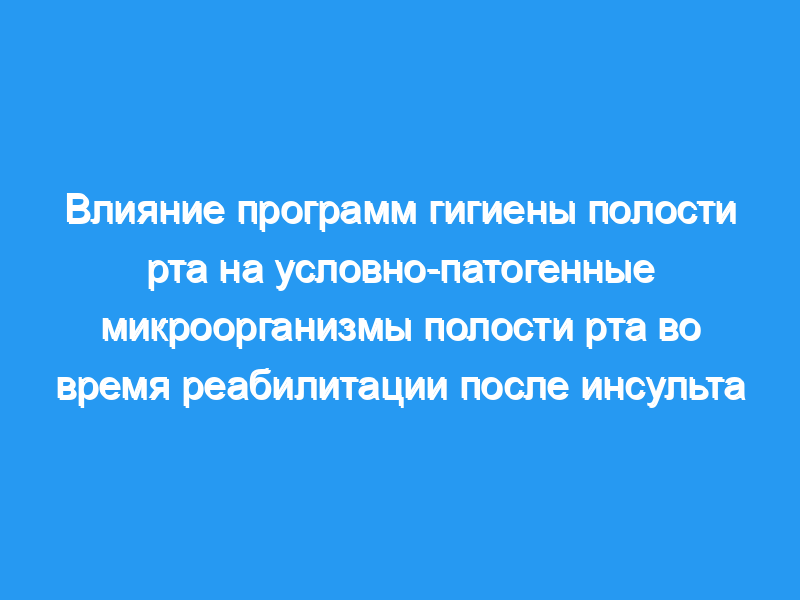 Целью данного исследования была оценка эффективности традиционной программы гигиены полости рта (COHCP) и расширенной программы гигиены полости рта (AOHCP) в отношении распространенности и жизнеспособности условно-патогенных микроорганизмов полости рта среди пациентов, проходящих реабилитацию после инсульта.
