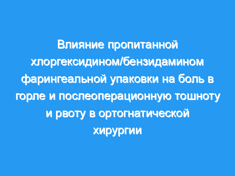 Целью настоящего исследования было выяснить, может ли применение фарингеальных упаковок, пропитанных комбинацией хлоргексидина глюконата 0,2% и бензидамина гидрохлорида 0,15% (CGBH) были эффективны в предотвращении послеоперационной боли в горле и PONV у пациентов, перенесших ортогнатическую хирургическую операцию.