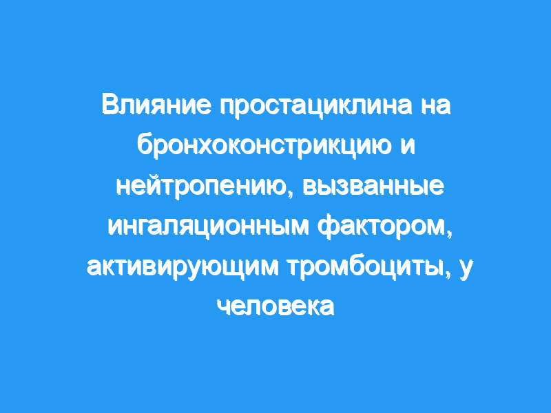 Агрегация тромбоцитов Ex vivo до PAF (от 10(-9) до 10(-7) моль/л) значительно ингибировалась PGI2. Циркулирующие нейтрофилы уменьшились с 4.7 +/- 0.9 x 10(9)/Л до 1.5 +/- 0.3 х 10(9)/л (р менее 0,05) через 5 минут после первой ингаляции PAF во время инфузии разбавителя, тогда как при PGI2 существенных изменений не наблюдалось. Таким образом, PGI2 не влияет на PAF-индуцированную бронхоконстрикцию у человека, несмотря на то, что вызывает заметное ингибирование агрегации тромбоцитов, индуцированной PAF ex vivo, и предотвращает падение нейтрофилов.