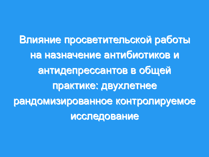 Назначение антибиотиков широкого спектра действия и антидепрессантов в общей практике часто не соответствует рекомендациям. Цель состояла в том, чтобы определить эффективность просветительской работы в улучшении назначения отдельных антибиотиков и антидепрессантов, а также то, сохраняется ли эффект в течение двух лет. Дизайн: Одиночное слепое рандомизированное исследование.