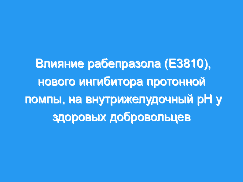 В этом исследовании мы изучили влияние рабепразола (E3810), нового ингибитора протонной помпы, на кислотность желудка в физиологических условиях у здоровых добровольцев с использованием 24-часового внутрижелудочного мониторинга рН.