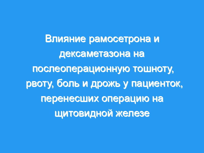 Два противорвотных препарата, рамосетрон и дексаметазон, значительно уменьшена частота и тяжесть послеоперационной тошноты и необходимость введения спасательных противорвотных препаратов. Кроме того, оба препарата эффективно уменьшали тяжесть боли и озноба. Рамосетрон превосходил дексаметазон в уменьшении тошноты, потребления противорвотных средств и тяжести тошноты, но не в уменьшении частоты озноба. Необходимы дальнейшие исследования для выяснения корреляции между послеоперационной тошнотой, болью и дрожью, поскольку в настоящем исследовании была показана статистически значимая, но слабая корреляция.