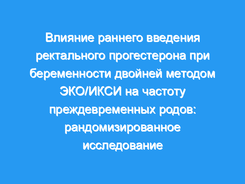 Ректальный естественный прогестерон, начиная с первого триместра беременности при двойне методом ЭКО/ИКСИ, не уменьшал спонтанных преждевременных родов. Регистрация судебного разбирательства: Судебное разбирательство было зарегистрировано 31 января 2014 года по адресу www.ISRCTN.com , номер 69810120.