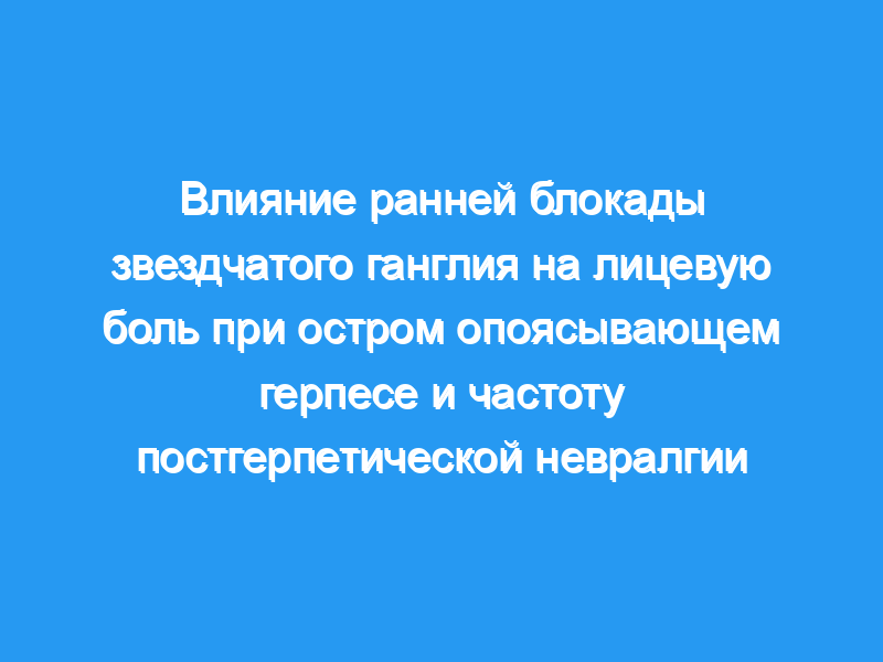 Ранняя блокада звездчатых ганглиев в сочетании с противовирусным средством является очень эффективным методом лечения, она резко уменьшает интенсивность острой боли и сокращает ее продолжительность, а также снижает частоту постгерпетической невралгии.