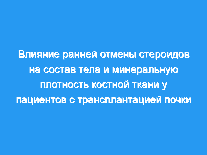 Лечение кортикостероидами может оказывать важное влияние на состав тела и минеральную плотность костной ткани (МПК) у пациентов с трансплантацией почки (РТХ).