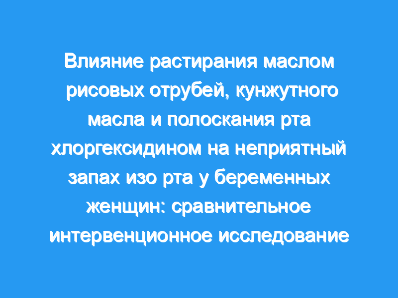 Настоящее исследование было проведено для сравнения влияния растительного масла с маслом рисовых отрубей, растительного масла с кунжутным маслом и растительного масла с хлоргексидином для полоскания рта на уменьшение неприятного запаха изо рта у беременных женщин. Условия и дизайн: Тридцать беременных женщин, посещавших Гинекологическое амбулаторное отделение (OPD) Мусульманской медицинской больницы, Харан-Хана-роуд, Пани-Гейт, Вадодара, Гуджарат, Индия, были набраны в настоящее рандомизированное двойное слепое интервенционное исследование. Субъекты и методы: Подходящие беременные женщины лица, которые дали согласие на участие в исследовании, были случайным образом распределены для получения исследуемых вмешательств. Неприятный запах изо рта измеряли в начале и через 14 дней после вмешательства с помощью TANITA breath checker HC-212M-BL. Используемый статистический анализ: Ввод данных был выполнен в Microsoft Excel 2007, а статистический анализ был выполнен с использованием SPSS версии 17. Для интерпретации различий в исходном и постинтервенционном уровнях неприятного запаха изо рта использовались ранговые тесты Уилкоксона. Односторонний ANOVA был проведен для сравнения среднего снижения показателей неприятного запаха изо рта в трех группах вмешательства.