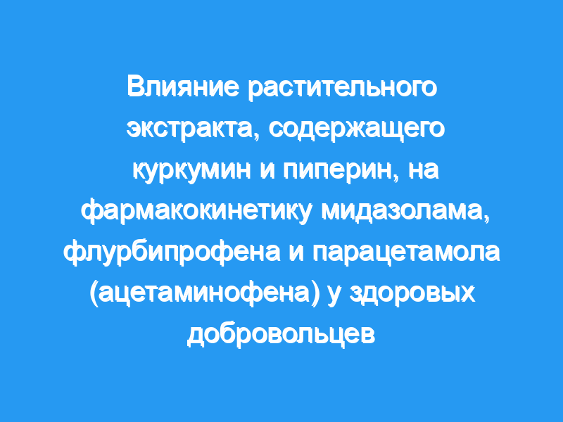 Было проведено рандомизированное плацебо-контролируемое перекрестное исследование с участием восьми здоровых добровольцев. Стандартизированный препарат куркуминоидов/пиперина (4 г куркуминоидов плюс 24 мг пиперина) или соответствующее плацебо вводили перорально четыре раза в течение 2 дней перед пероральным введением мидазолама (зонд CYP3A), флурбипрофена (зонд CYP2C9) или парацетамола (ацетаминофен) (двойной зонд UGT и SULT). Концентрации лекарств, метаболитов и трав в плазме и моче измеряли методом ВЭЖХ. После введения мидазолама также измеряли седативный эффект субъекта и электроэнцефалографический эффект.