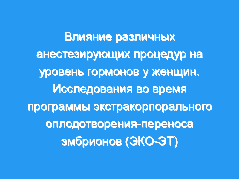 Различные анестезирующие процедуры, которые использовались во время программы экстракорпорального оплодотворения и переноса эмбрионов (ЭКО-ЭТ), были проанализированы с целью определения их влияния на уровни эстрадиола, прогестерона, пролактина и бета-эндорфина в плазме крови и результаты ЭКО-ЭТ. методы. Пятьдесят четыре пациента, ожидающие трансвагинальной аспирации яйцеклеток, были рандомизированы в три группы: (1) анестезия с использованием кетамина в качестве индукционного агента и анальгетика (n = 20), (2) общая интубационная анестезия с использованием тиопентона для индукции и энфлурана для поддержания (n = 18) и (3) отсутствие анестезии (n = 16). Эстрадиол, прогестерон, пролактин и бета-эндорфин измеряли с 3 по 14 день в зависимости от аспирации фолликула.