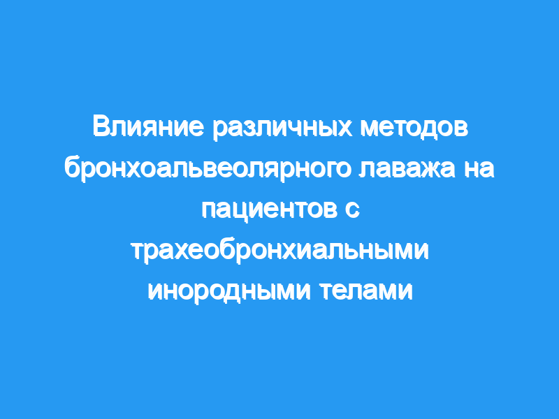 Цели/гипотеза: Сравнить различные эффекты бронхоальвеолярного лаважа (БАЛ) с различными комбинациями лидокаина, адреналина и дексаметазона у педиатрических пациентов с вдыхаемым трахеобронхиальным инородным телом (ТФБ). Дизайн исследования: Рандомизированное контролируемое исследование.
