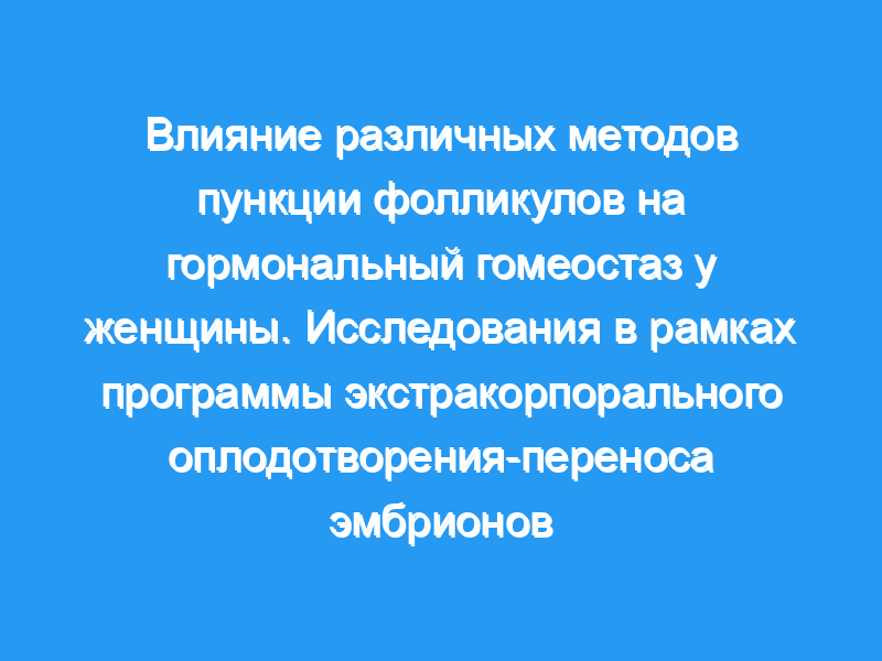 Были проанализированы различные методы пункции фолликулов, которые использовались в программе экстракорпорального оплодотворения-переноса эмбрионов, с целью определения их влияния на уровни эстрадиола, прогестерона, пролактина и бета-эндорфина в плазме крови.