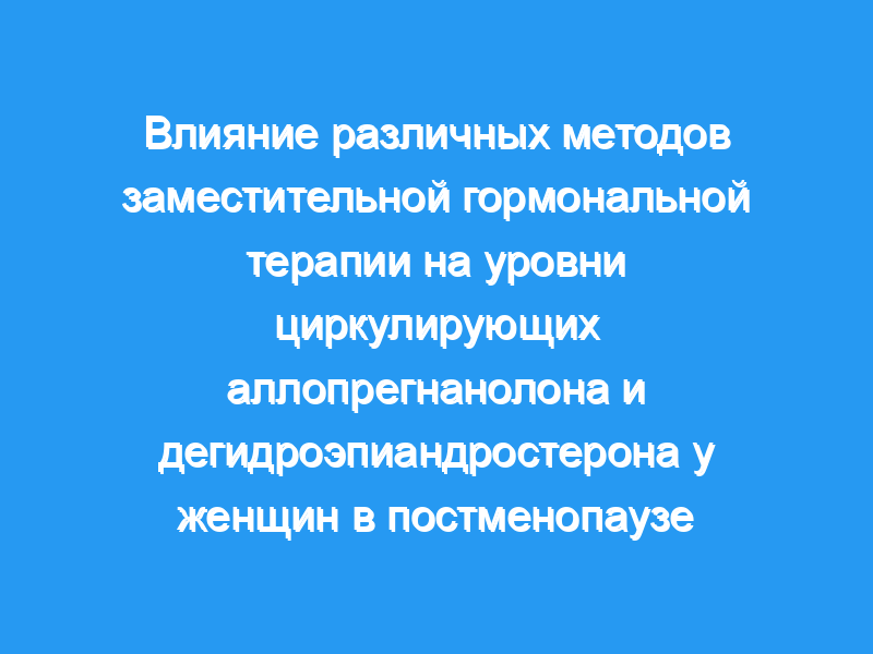 Мы оценили уровни аллопрегнанолона и ДГЭА в крови после 1, 3, 6, 9 и 12 месяцев ЗГТ с десятью различными молекулами эстрогена или эстроген-прогестина, схемами и путями введения у 186 женщин в постменопаузе.Также оценивали уровни кортизола, лютеинизирующего гормона, фолликулостимулирующего гормона, эстрадиола и прогестерона.