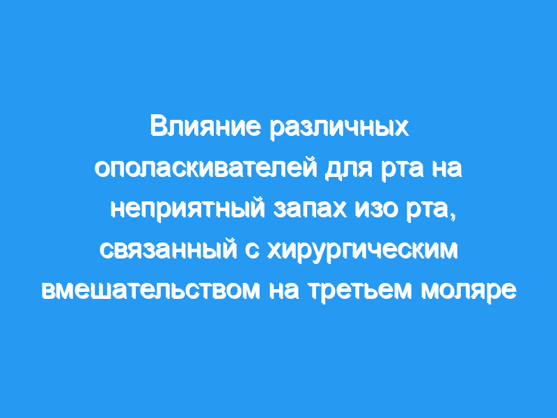 Неприятный запах изо рта, связанный с операцией на третьем моляре, усиливается в течение первой послеоперационной недели и уменьшается до предоперационного уровня через 15 дней. Результаты 3 различных методов показали, что ополаскиватели для полости рта Chx и Chx+Bzd являются более эффективными, чем другие, при неприятном запахе изо рта, связанном с хирургией третьего моляра.
