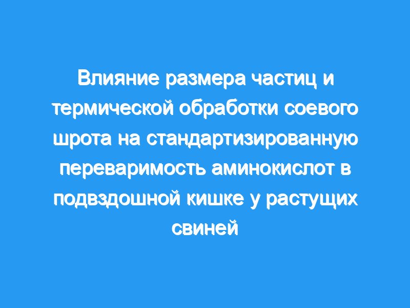 SID CP и AA были самыми низкими в мягком, промежуточными в крепком и самыми высокими в среднеобжаренном SBM (P <, 0,001). Эти различия в SID отражаются в различном содержании ингибиторов трипсина, Lys, реактивных Lys и NDF. В заключение, как различия в размере частиц, так и различия в условиях термической обработки SBM могут влиять на SID CP и AA.