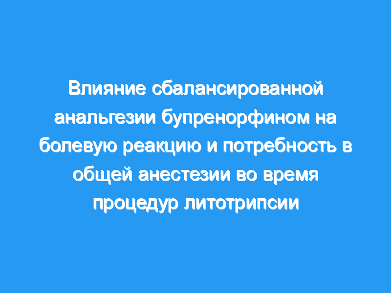 Была оценена эффективность сбалансированной анальгезии бупренорфином кетопрофен-пропацетамолом для контроля боли во время экстракорпоральной ударно-волновой литотрипсии (ESWL) с целью снижения требований к общей анестезии.