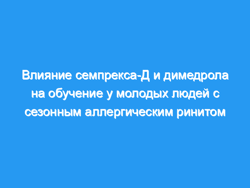 Исследование подтверждает наш предыдущий вывод о том, что симптомы аллергии снижают способность к обучению, что еще больше снижает обучаемость способность, которая еще больше снижается под действием димедрола. Атопические субъекты с аллергией, получавшие акривастин + псевдоэфедрин, учились так же хорошо, как и нормальные субъекты.