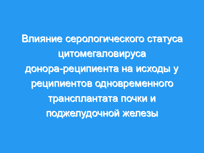 Пациенты с сахарным диабетом, перенесшие одновременную трансплантацию почки и поджелудочной железы (СКПТ), могут быть подвержены высокому риску развития инфекции, вызванной цитомегаловирусом (ЦМВ).