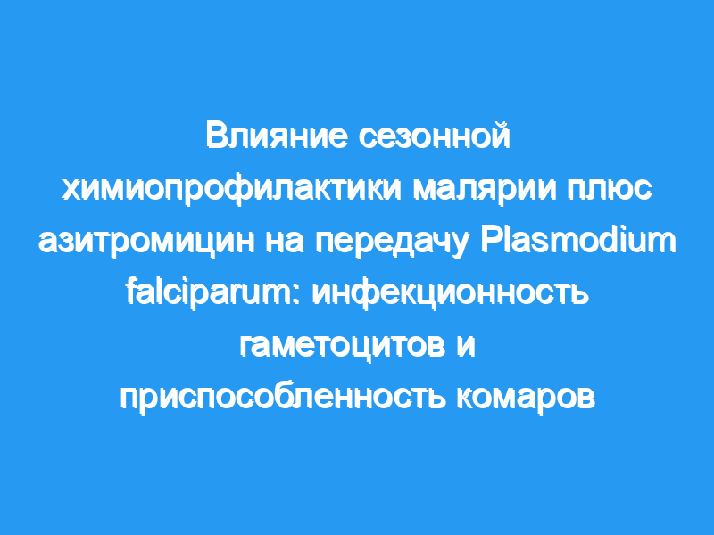 Сезонная химиопрофилактика малярии (SMC) состоит из введения сульфадоксин-пириметамина (SP) + амодиахина (AQ) с ежемесячными интервалами детям в период передачи малярии. Вопрос о том, может ли добавление азитромицина (AZ) к SMC усилить эффект от вмешательства, был проверен в ходе двойного слепого рандомизированного плацебо-контролируемого исследования. Было исследовано влияние SMC и добавления AZ на передачу малярии и на особенности жизненного цикла комаров Anopheles gambiae.