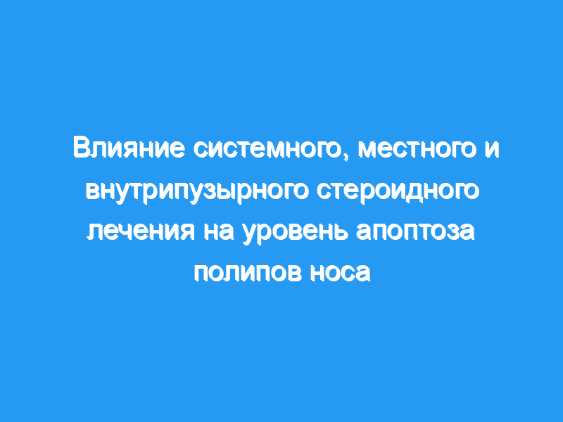 Индекс апоптоза при полипах носа, получавших системные, местные и внутриполипидные инъекционные формы глюкокортикоидов, был выше, чем это в контрольной группе. Системное лечение стероидами вызывало наибольший апоптоз.
