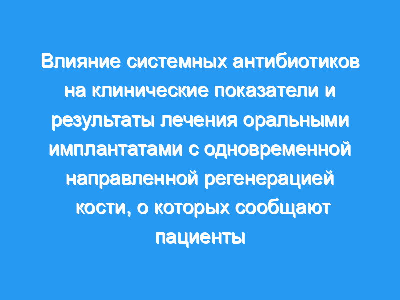 В этом исследовании системные антибиотики не давали дополнительных преимуществ PROMs, а также не предотвращали послеоперационных осложнений у здоровых с медицинской точки зрения и пародонтологически здоровых пациентов, проходящих терапию оральными имплантатами с одновременным GBR. Однако для подтверждения клинических результатов этого исследования по-прежнему требуются дальнейшие исследования с большим объемом выборки.