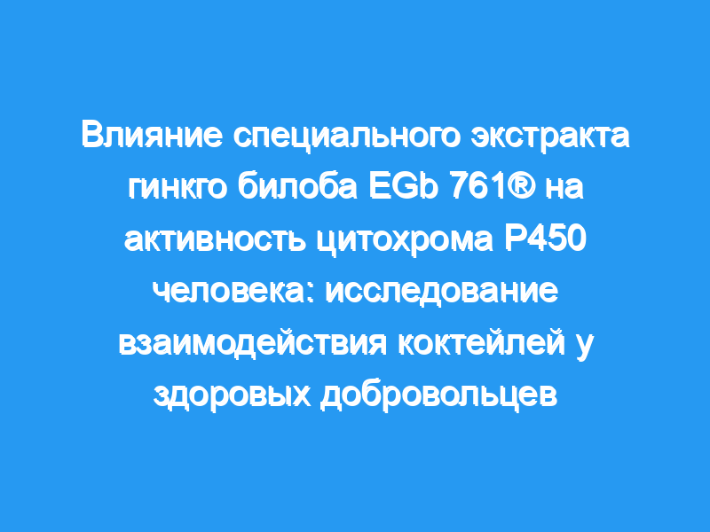 Мы оценили профиль метаболического лекарственного взаимодействия экстракта гинкго билоба EGb 761® у человека in vivo в отношении активности основных ферментов цитохрома Р450 (CYP).