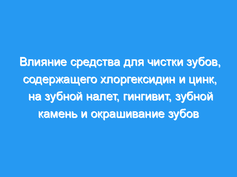 Участники либо использовали ополаскиватель с хлоргексидином 0,12% и средство для ухода за деснами (положительный контроль), либо ополаскиватель с плацебо и средство для ухода за деснами (контроль) или ополаскиватель плацебо и экспериментальное средство для чистки зубов, содержащее 0,4% хлоргексидина и 0,34% Zn2+ (экспериментальная группа). После 6 месяцев использования продукта у всех групп было меньше зубного налета, меньше гингивита и у всех развился зубной камень и окрашивание зубов.