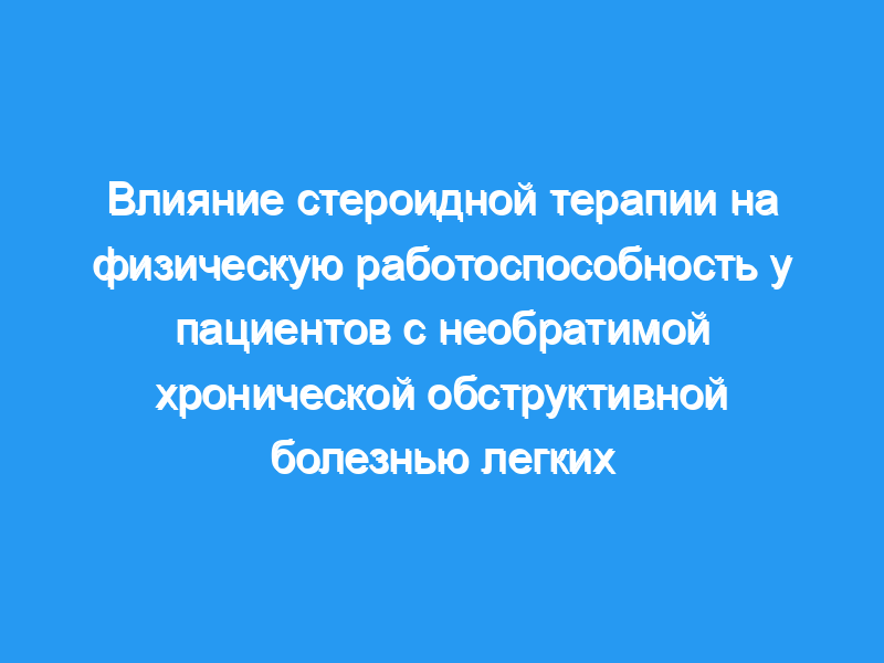 Изменение физической нагрузки не было связано с изменением объема форсированного выдоха за одну секунду у отдельных пациентов (r = 0,08). Мы пришли к выводу, что в отсутствие каких-либо улучшений в обычных тестах механики дыхательных путей стероидная терапия не улучшает физическую работоспособность у пациентов с ХОБЛ.