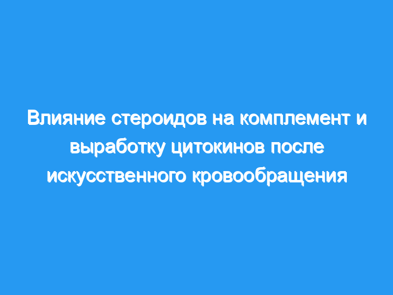 Девятнадцать рандомизированных пациентов (10 стероидных /9 нестероидных) приняли участие в одобренном институциональным наблюдательным советом протоколе для измерения уровня комплемента и интерлейкина до и после плановой коронарной реваскуляризации. Стероидный режим включал 1 г сукцината натрия метилпреднизолона внутривенно перед шунтированием и 4 мг дексаметазона каждые 6 часов в течение четырех доз в течение первых 24 часов восстановления. Уровни комплемента и интерлейкина измеряли до шунтирования, сразу после шунтирования и через 24, 48 и 72 часа после восстановления.