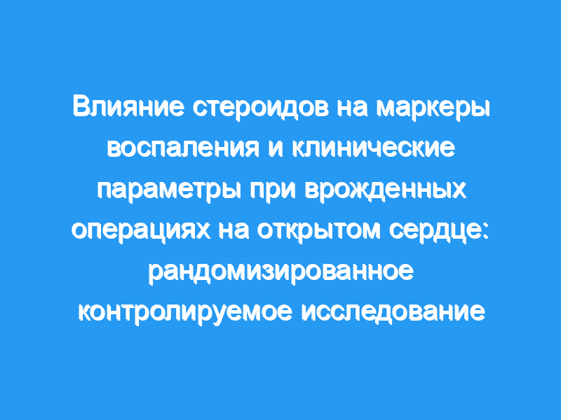 Оценить влияние внутривенного введения стероидов на ранние послеоперационные маркеры воспаления и клинические параметры у детей, перенесших операцию на открытом сердце.