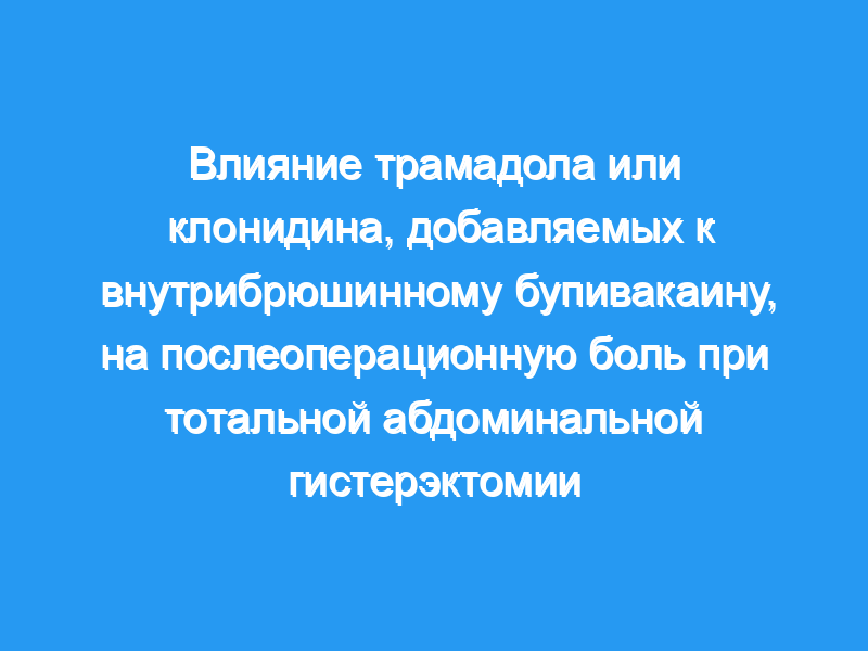 Мы стремились оценить влияние внутрибрюшинного применения бупивакаина и комбинаций бупивакаина с трамадолом и бупивакаина с клонидином на послеоперационную боль при тотальной абдоминальной гистерэктомии.