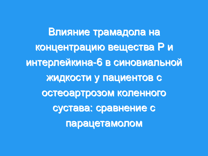 Оба обезболивающих препарата трамадол и парацетамол широко используются для симптоматической терапии остеоартрита (ОА). Целью этого двойного слепого рандомизированного исследования у пациентов с ОА коленного сустава было сравнить их влияние на концентрацию интерлейкина (IL)-6 и вещества P (SP) в синовиальной жидкости. Кроме того, мы оценили концентрацию трамадола и его активного метаболита (О-десметил-трамадола, М1) в плазме и синовиальной жидкости после перорального приема этого препарата.