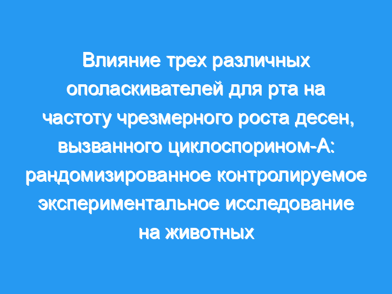 Целью этого исследования была оценка влияния трех различных ополаскивателей для полости рта на частоту чрезмерного роста десен, вызванного циклоспорином А. План исследования: Сто крыс-альбиносов были разделены на пять равных групп. Крысы I группы не получали никакого лечения. Крысам II группы вводили циклоспорин-А. С крысами III, IV и V групп обращались как с крысами II группы и одновременно применяли хлоргексидин глюконат, хлорид цетилпиридиния и жидкости для полоскания рта с эфирным маслом соответственно. Десять крыс из каждой группы были подвергнуты эвтаназии после первой недели лечения, а остальные крысы были подвергнуты эвтаназии после второй недели лечения. Полученные образцы окрашивали гематоксилином и эозином, трихромом Массона и фактором роста опухоли бета (TGF-β), матриксной металлопротеиназой 1 (MMP-1) и интерлейкином 6 (IL-6) иммуногистохимическими красителями.