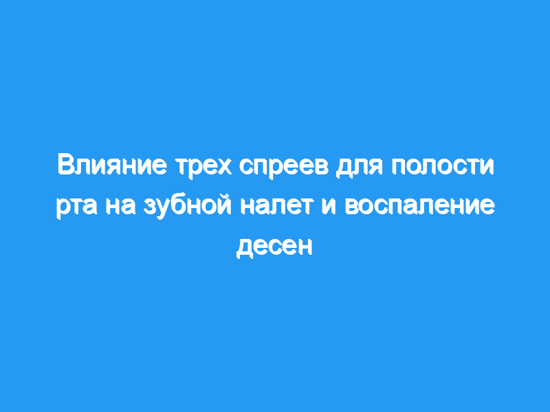 Пятьдесят один пародонтально здоровый доброволец, случайным образом разделенный на три группы спреев, воздерживался от всех механических мер гигиены полости рта в течение 7 дней и вместо этого использовал один из случайно назначенных спреев два раза в день. Индекс зубного налета (PI), десневой индекс (GI) и индекс времени десневого кровотечения (GBTI) оценивали на 0-й и 7-й дни. Также оценивали побочные эффекты.