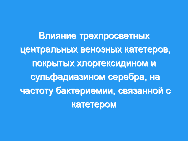 Оценить эффективность трехпросветных центральных венозных катетеров, покрытых комбинированным препаратом хлоргексидина и сульфадиазина серебра (CSS), в снижении частоты местной катетерной инфекции и связанной с катетером бактериемии. Дизайн: Рандомизированное контролируемое исследование.