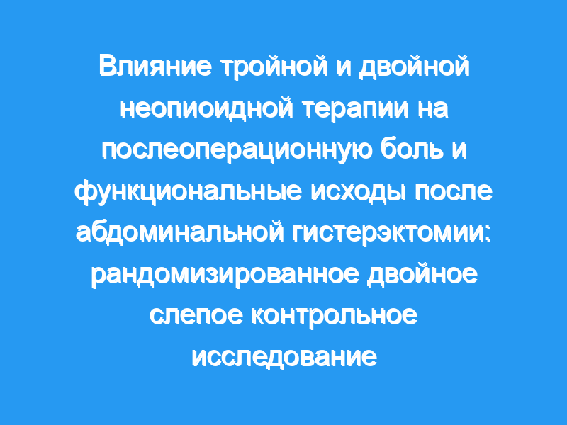 Сравнить тройные и двойные неопиоидные схемы периоперационного обезболивания у женщин, перенесших абдоминальную гистерэктомию. Дизайн: Рандомизированное, параллельное, двойное слепое контролируемое исследование.