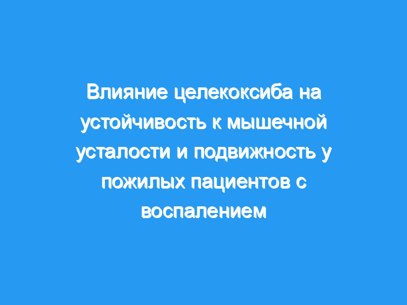 В исследование были включены сорок три последовательно госпитализированных пожилых пациента (31 женщина, 12 мужчин, средний возраст [SD] 84 [6] года). Четырнадцать пациентов получали целекоксиб, 14 получали ацетаминофен, а 15 не получали никаких дополнительных лекарств. Изменение устойчивости к усталости значительно различалось между группами (P = 0,021, критерий хи-квадрат Крускала-Уоллиса), причем у пациентов, получавших целекоксиб, наблюдалось значительно большее улучшение по сравнению с ацетаминофеном и контрольной группой (увеличение на 63% по сравнению с исходным уровнем, P <, 0,05). Не было никаких существенных различий между группами в изменениях силы захвата, подвижности, IL-1beta, IL-6, TNF-альфа или TGF-бета. Изменения в уровнях IL-10 значительно различались между группами (P = 0,020, критерий хи-квадрат Крускала-Уоллиса), с большим улучшением в группе целекоксиба по сравнению с группой ацетаминофена (P = 0,032).