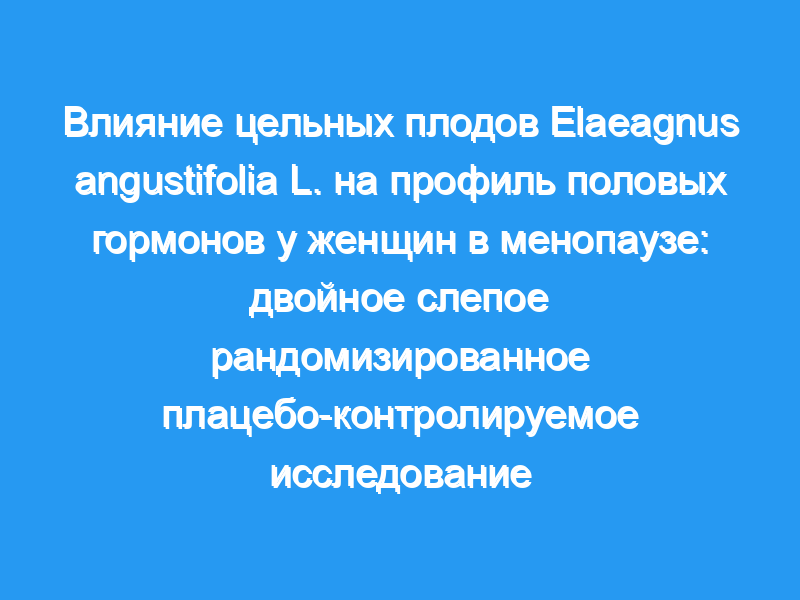 Этнофармакологическая значимость: Менопауза является результатом прерывания деятельности яичников и снижения выработки ими эстрадиола. Растительные лекарственные средства в качестве альтернативы гормональной терапии все чаще используются женщинами в период менопаузы. Elaeagnus angustifolia L. (Senjed по-персидски) — хорошо известное растительное лекарственное средство с различными терапевтическими эффектами в соответствии с иранской традиционной медициной, которое рекомендуется для облегчения побочных эффектов менопаузы. Целью настоящего исследования было оценить влияние перорального приема цельного фруктового порошка E. angustifolia на профиль половых гормонов у женщин в менопаузе.