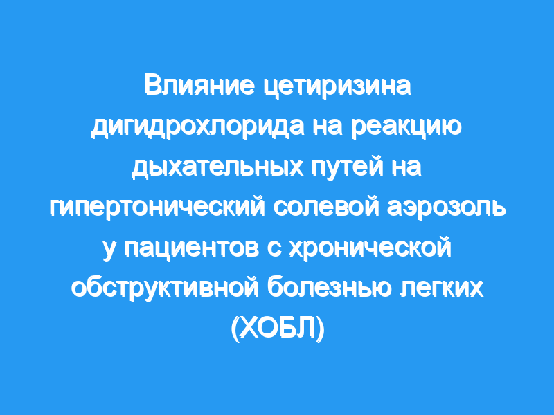 Гипертонический солевой аэрозоль может вызвать обструкцию дыхательных путей у пациентов с ХОБЛ средней или тяжелой степени. В настоящем исследовании мы оценили, способен ли дигидрохлорид цетиризина модулировать этот ответ.