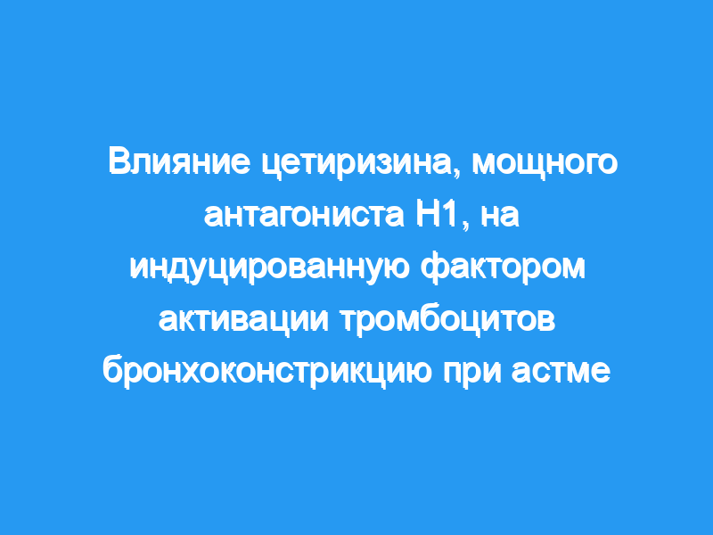 Влияние цетиризина, мощного и специфического антагониста рецепторов H1, было изучено на бронхоконстрикцию, индуцированную фактором активации тромбоцитов, у 10 пациентов (5 мужчин, средний возраст 37,4 [3,6] года) с легкой формой астмы в плацебо-контролируемом двойном слепом перекрестном исследовании.над жеребцом.