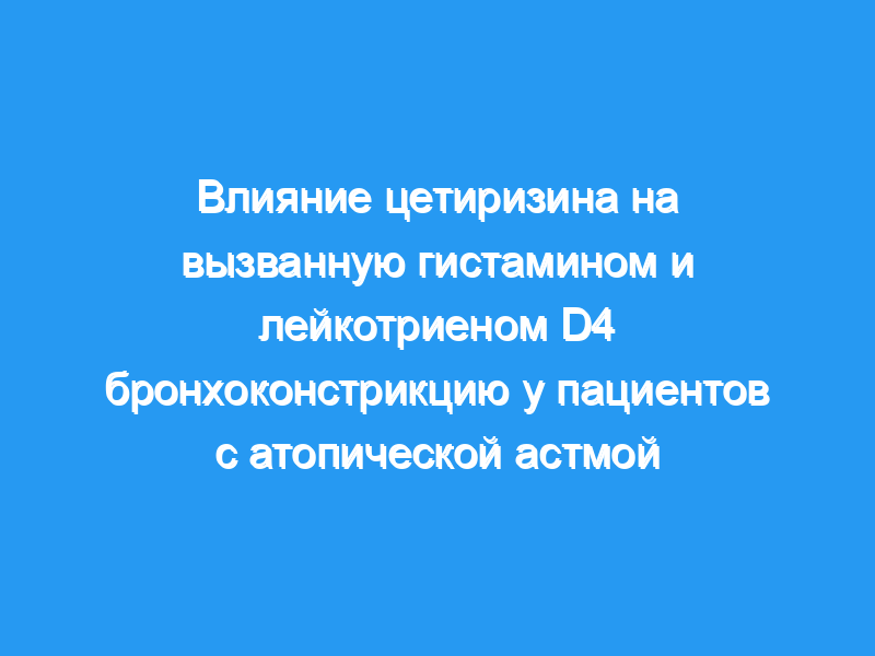 Эффект как от однократной дозы (15 мг), так и от 7-дневного лечения (15 мг два раза в день) цетиризином, мощным антагонистом Н1 влияние на бронхоконстрикцию, вызванную гистамином и лейкотриеном D4 (LTD4), было изучено у 10 пациентов с легкой атопической астмой в плацебо-контролируемом двойном слепом перекрестном исследовании.