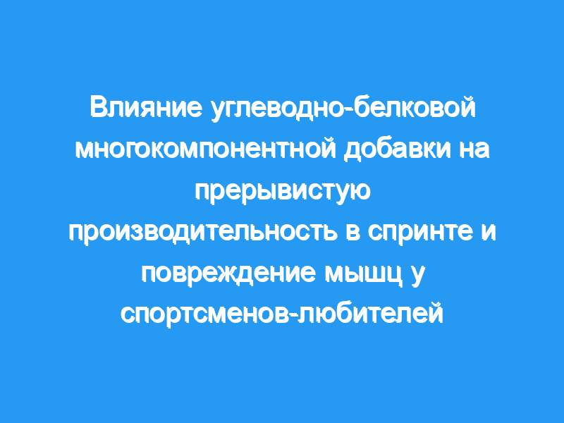 Время пятнадцатиметрового спринта было медленнее (p <, 0,05) в пост, 1 час и 24 часа по сравнению с pre без различий между условиями (p >, 0,05). Креатинкиназа через 24 часа была ниже (p <, 0,05) в многокомпонентной (461,8 ± 271,8 Ед·л) по сравнению как с углеводами, так и с плацебо (606 ± 314,5 Ед·л и 636 ± 344,6 Ед·л соответственно). Миоглобин увеличился (p & lt, 0,05) во всех 3 состояниях после и через 1 час по сравнению с pre, демонстрируя более низкие значения через 1 час (p <, 0,05) для углеводов и тенденцию (p = 0,060) для многокомпонентных продуктов по сравнению с плацебо (211,4 ± 127,2 нг·мл(-1) и 239,4 ± 103,8 нг·мл(-1) в.
