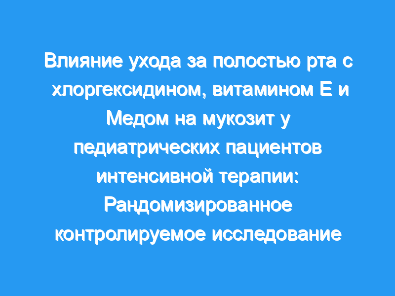 Это исследование было проведено для определения влияния ухода за полостью рта с использованием хлоргексидина, витамина Е и меда на лечение мукозита полости рта (ОМ) у детей, проходящих лечение в педиатрическом отделении интенсивной терапии (PICU). Дизайн и методы: Исследование представляло собой рандомизированное контролируемое исследование с параллельным дизайном. Выборка исследования состояла из 150 детей, которые проходили лечение в отделении интенсивной терапии университетской больницы в Турции. Дети, включенные в исследование, были случайным образом разделены на шесть групп в зависимости от используемых растворов для ухода за полостью рта (n = 25 в каждой группе). Для сбора данных использовались Форма демографической информации и Индекс мукозита полости рта Всемирной организации здравоохранения.