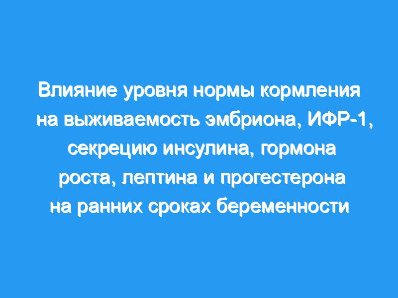 В сыворотке крови концентрации IGF-1, лептина и инсулина, как правило, были выше в H, чем в M и L на ранних сроках беременности, в то время как концентрации GH были выше в M, а прогестерона были самыми низкими в H. В то же время уровень кормовой нормы влиял на концентрацию ИФР-1, инсулина, гормона роста, лептина и прогестерона при промывании матки.