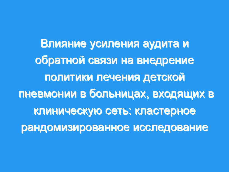 Всемирная организация здравоохранения (ВОЗ) пересмотрела свои клинические рекомендации по лечению детской пневмонии в 2013 году. Значительные задержки произошли во время предыдущего внедрения новых руководящих принципов в рутинную клиническую практику в странах с низким и средним уровнем дохода (LMIC). Поэтому мы рассмотрели, может ли предоставление расширенного аудита и обратной связи в отличие от обычной стандартной обратной связи ускорить принятие новых рекомендаций по пневмонии клиническими бригадами в больницах с низким уровнем дохода.