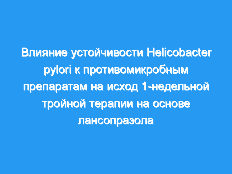 Определить влияние устойчивости Helicobacter pylori к противомикробным препаратам на эффективность различных тройных методов лечения на основе ингибиторов протонной помпы (ИПП).