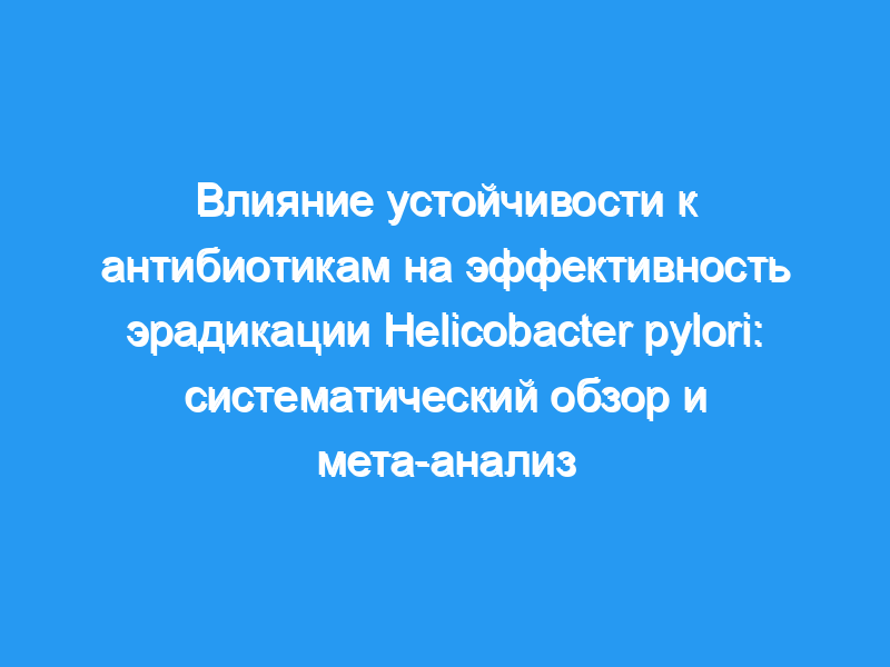 Число устойчивых к антибиотикам штаммов быстро растет из-за широкого применения антибиотиков. Чтобы оценить текущее влияние устойчивости к антибиотикам на эффективность эрадикации Helicobacter pylori, мы провели этот систематический обзор и мета-анализ.