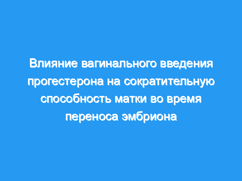Отделение вспомогательной репродукции. Пациентка(ы): Были обследованы восемьдесят четыре женщины, прошедшие 84 цикла ГНРГ-а и ФСГ/ХГЧ для ЭКО-ЭТ. Вмешательство (вмешательства): Вагинальный прогестерон был случайным образом введен в день извлечения яйцеклеток (группа A, n = 43) или вечером ET (группа B, n = 41). В день введения ХГЧ и непосредственно перед ЭТ 2-минутные сагиттальные снимки матки были получены с помощью ультразвука и оцифрованы с помощью системы анализа изображений для оценки частоты сокращений матки. Основной показатель (показатели) результата: Частота сокращений матки. Результат(ы): В то время как частота сокращений матки была одинаковой в обеих группах в день ХГЧ (4.6 +/- 0.3 и 4.5 +/- 0.3 сокращений в минуту соответственно), только у женщин в группе А наблюдалось снижение частоты сокращений матки в день ЭТ (2.8 +/- 0.2 против 4.2 +/- 0.3 сокращений в минуту). Заключение(ы): Вагинальное введение прогестерона, начиная со дня извлечения яйцеклетки, вызывало снижение частоты сокращений матки в день ЭТ по сравнению с предовуляторными значениями. Расслабление матки перед ЭТ, вероятно, улучшит исход ЭКО-ЭТ, избегая вытеснения эмбрионов из полости матки.