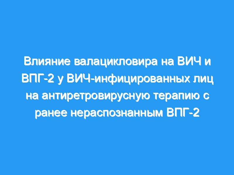 Мы стремились оценить влияние валацикловира на ВИЧ и ВПГ-2 у коинфицированных пациентов, получающих антиретровирусную терапию с ранее не выявленной инфекцией ВПГ-2.