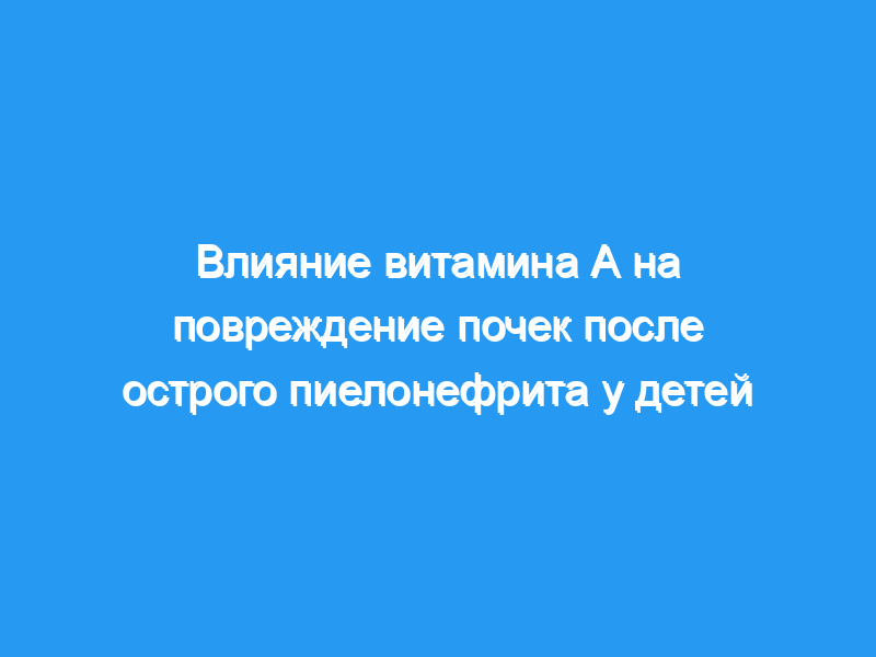 Исследования на животных показывают, что введение витамина А крысам с экспериментальной инфекцией мочевыводящих путей снижает частоту почечных рубцов (Kavukçu et al., BJU Int 83(9):1055-1059, 1999). Целью этого исследования было определить влияние витамина А на частоту необратимого повреждения почек у детей с острым пиелонефритом.